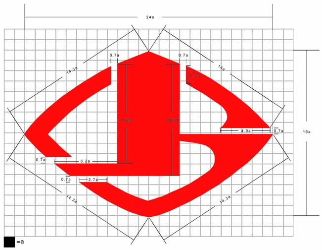 本圖嚴格規(guī)定標志制作的規(guī)范和各個部分比例關(guān)系,制作時應(yīng)嚴格按照本制圖法的規(guī)定。