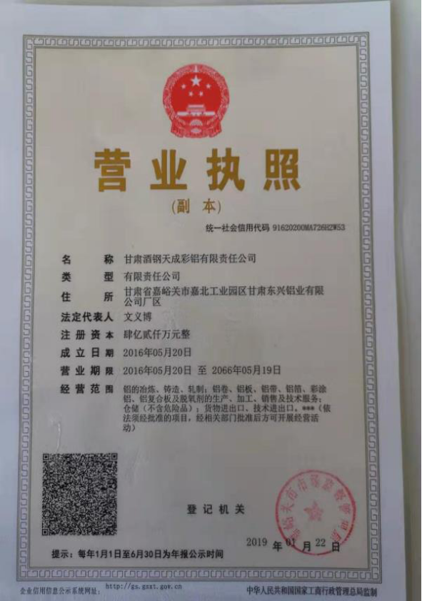 甘肅酒鋼天成彩鋁有限責(zé)任公司