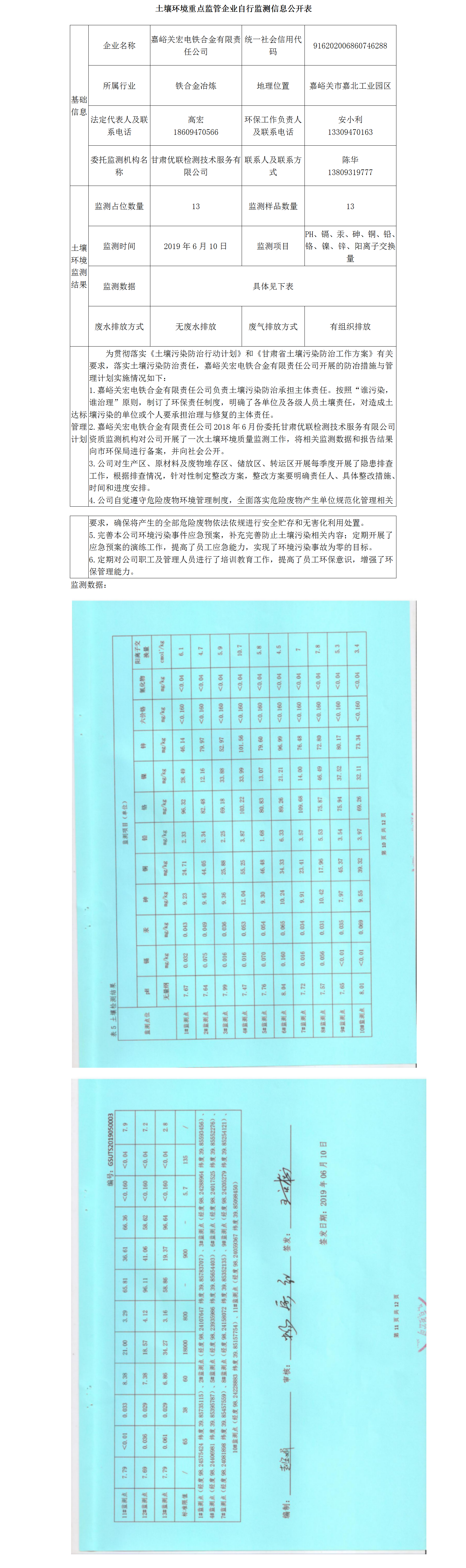 嘉峪關(guān)宏電鐵合金有限責(zé)任公司2019年土壤環(huán)境重點(diǎn)監(jiān)管企業(yè)自行監(jiān)測信息公開表