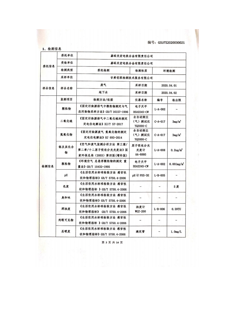 嘉峪關宏電鐵合金有限責任公司 100 萬噸鐵合金項目階 段性 |