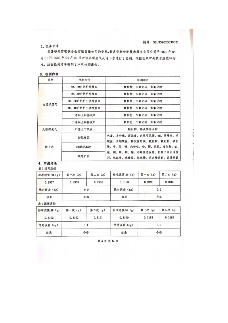 | 8#礦熱爐 | 顆粒物 | 2 | 2 | 2 | ||