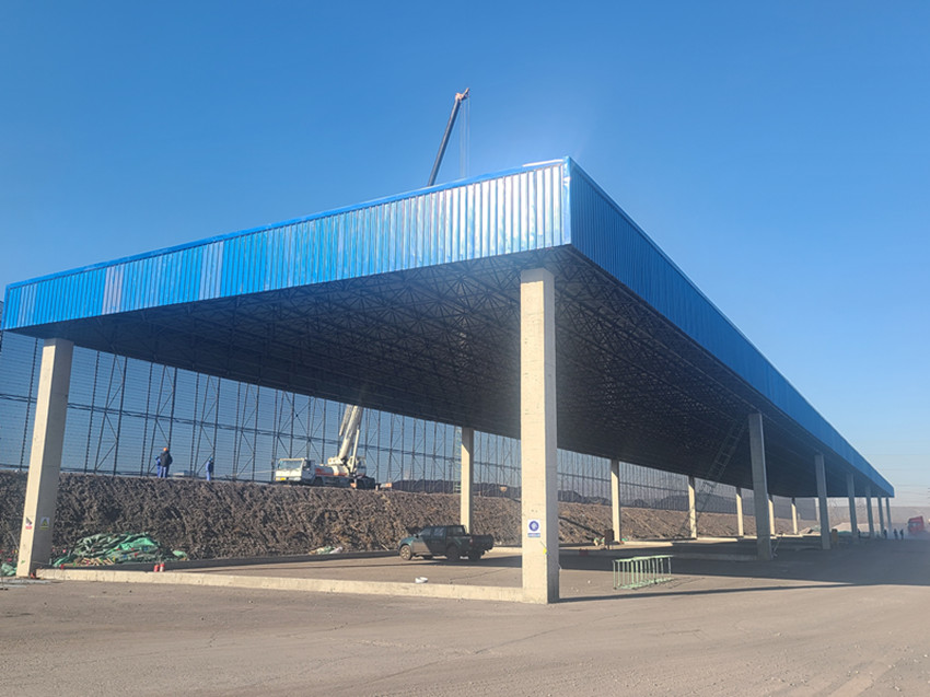 日前,由筑鼎龍泰工程公司承建的儲運部嘉北螢石料場料棚項目工程安裝完成。料棚長182m、寬20m、高8m,占地面積3640㎡,采用雙層網架結構,頂部采用彩鋼板封閉。項目建成后,將有效防止螢石料遭受雨水侵蝕,為鋼鐵生產、運輸做好物料保障,同時起到環保作用。朱彥龍 攝