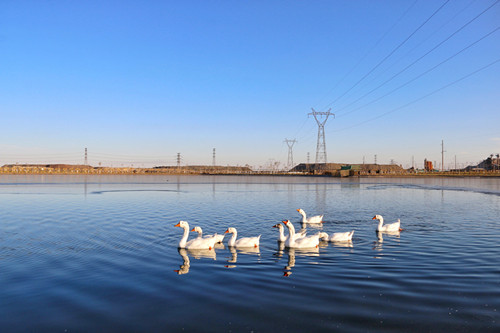 近年來,潤源公司冶金渣處理分公司踐行習近平生態文明思想,貫徹落實集團公司環保要求,積極推進環境整治工作,通過對渣堆生態環境整治、渣場道路硬化、種植花草灌木、鋪設綠化帶噴淋管線,渣場舊貌換新顏,實現生態效益、經濟效益雙豐收。圖為冬季潤源公司冶金渣處理分廠生態湖景色。焦媛媛 攝