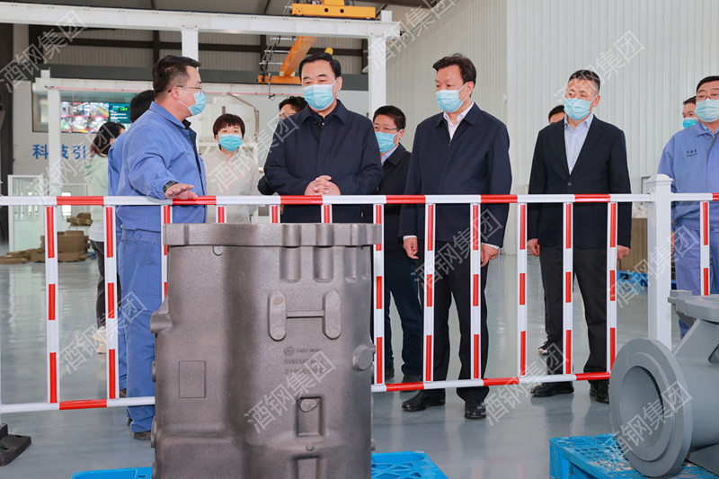馬廷禮先后來到技術中心中心實驗室、新材料研發中試基地,西部重工公司3D打印智能工廠,煤基氫冶金中試基地,現場了解酒鋼生產經營、科技創新、“三化”改造、資源綜合利用等情況,聽取有關工作匯報。